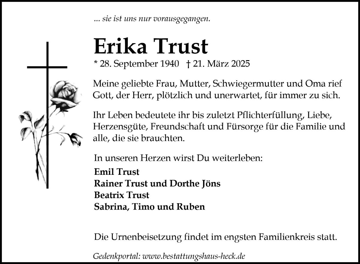 Mit Bestürzung haben wir von Erikas Tod erfahren.