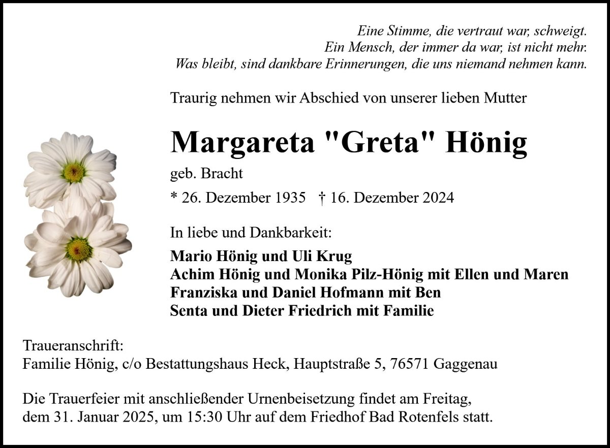 Margareta Hönig geb. Bracht