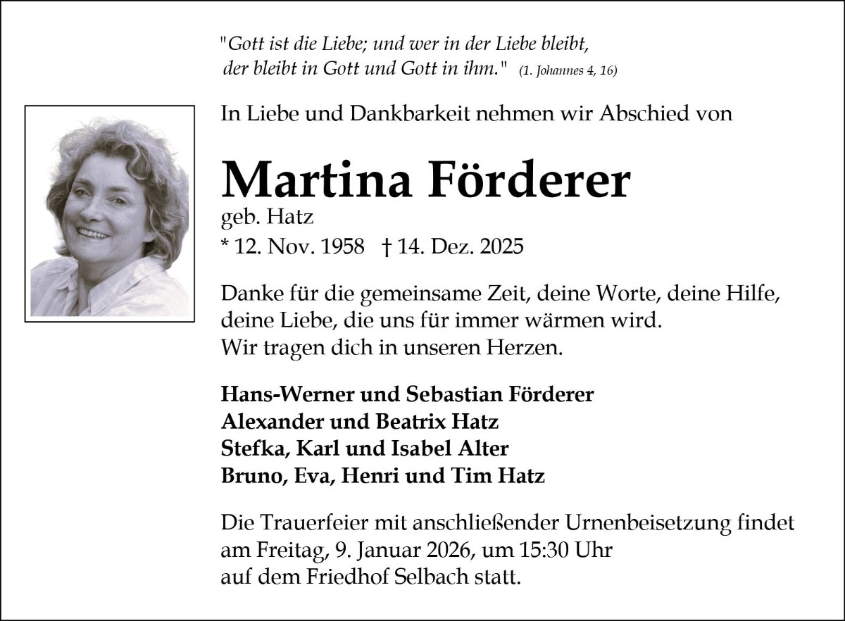 Martina Förderergestorben am 14. Dezember 2025